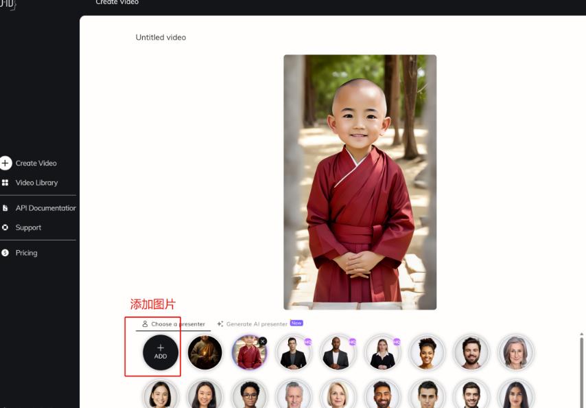 进入创建页面,上传你需要制作的图片数字人,就是前面绘画Ai制作的人,这里测试了,目前只能制作人的图片,其他的图无法制作。